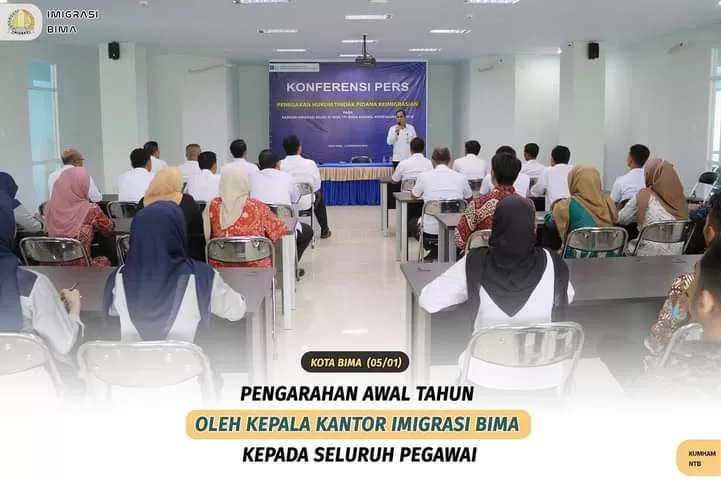 Usai kegiatan apel awal tahun 2024 ini kepala Kantor Imigrasi Kelas III Non TPI Bima Kantor Wilayah Kemenkumham NTB, M. Usman melanjutkan dengan memberikan pengarahan serta penguatan kepada seluruh pegawai Kantor Bertempat di aula Kantor Imigrasi Bima. Jumat, (5/1/2024).