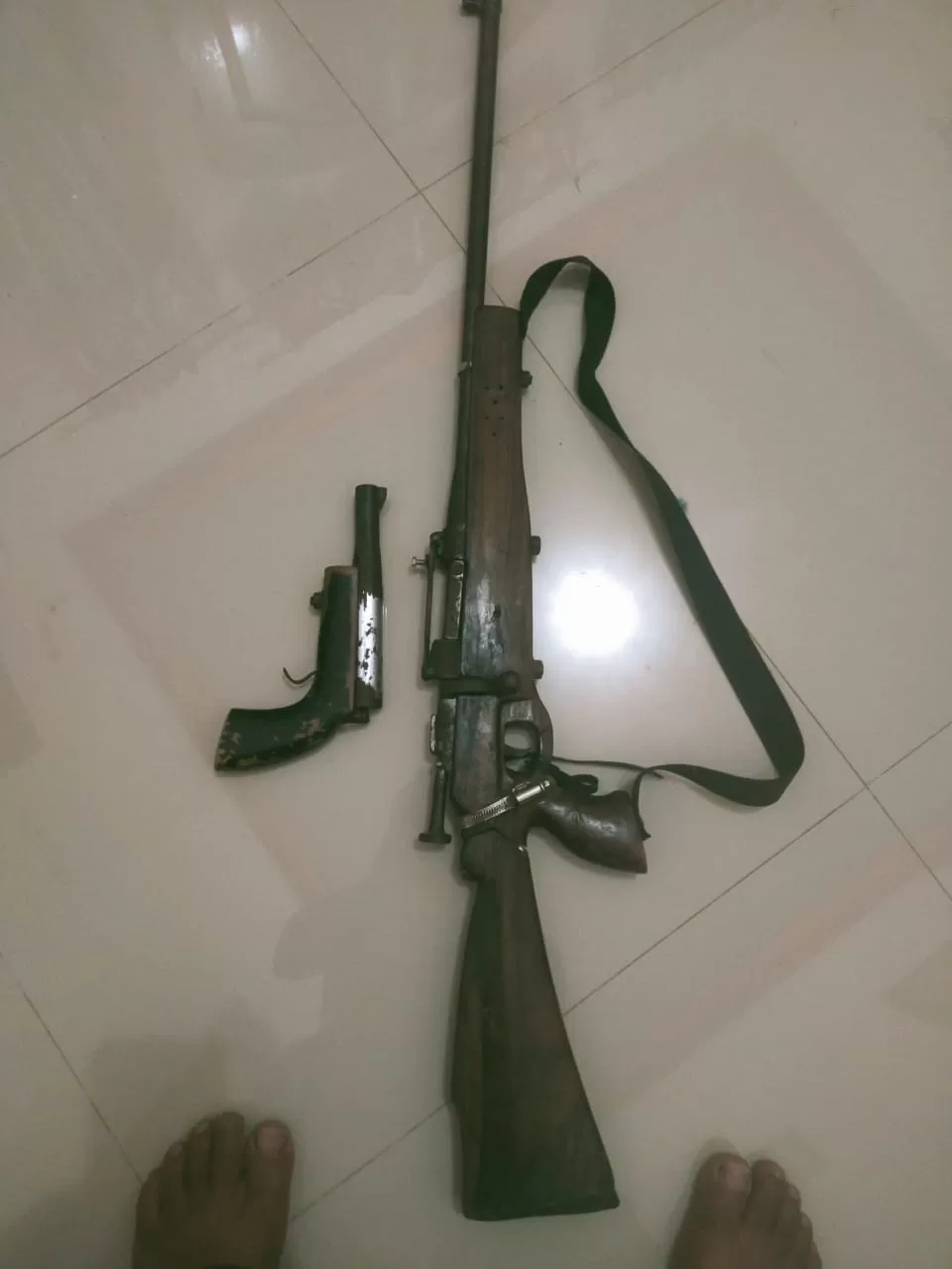 BIMA || Serah terima dan penyerahan 2 Unit senjata Api Rakitan laras panjang dan laras pendek oleh 2 orang warga masyarakat desa Ngali kec. Belo kab Bima di kediaman Wadanramil 1608-07/Monta di desa Rabakodo kec.woha kab bima dan diterima langsung oleh Wadanramil 07/Monta. Pada Senin, (22/01/2024) Sekira pukul.22.20 WITA.