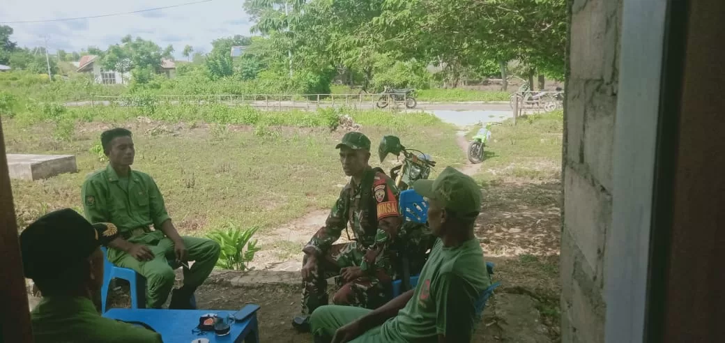KOTA WAINGAPU, || Sertu Wens Soge dan Serda Nur Bawon Babinsa Koramil 05/Kota Waingapu jajaran Kodim 1601/Sumba Timur melaksanakan komsos dengan anggota Linmas di wilayah Desa Luku wingir, Kecamatan Kambata Mapambuhang, Kabupaten Sumba Timur. Minggu (28/01/2024).