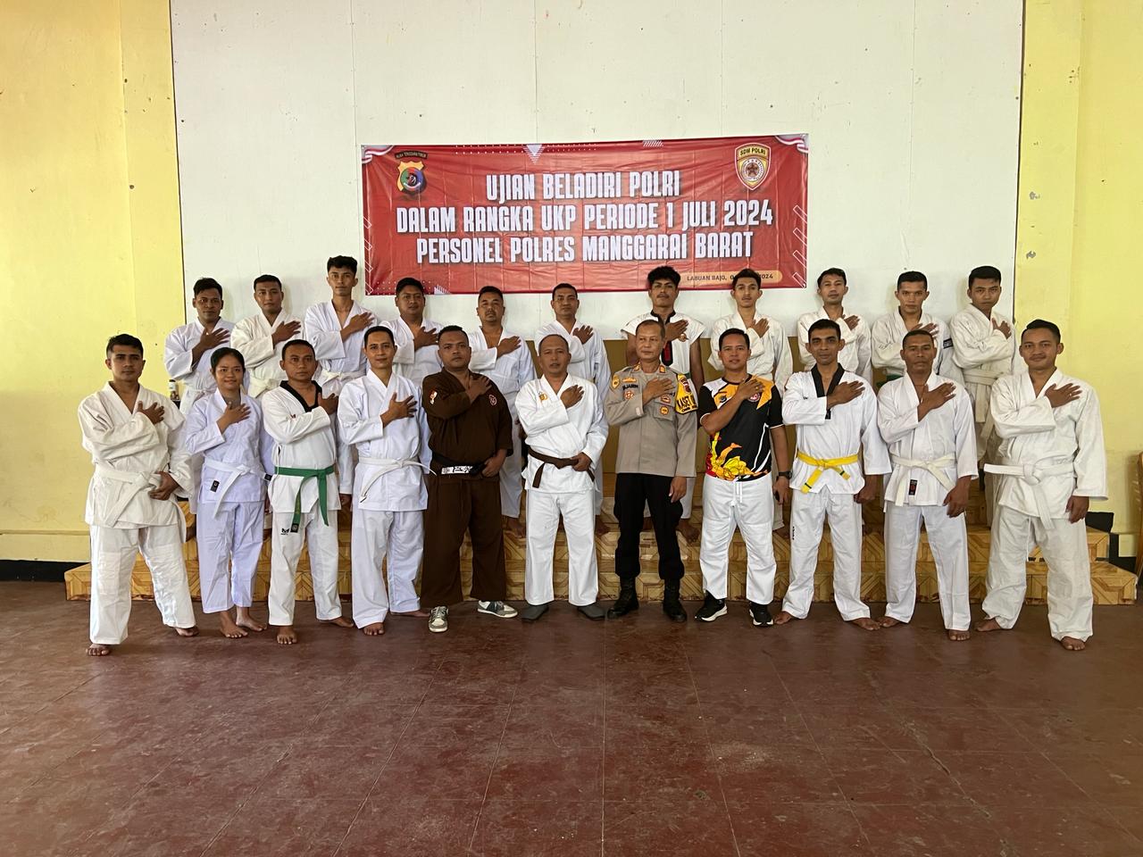 Sebanyak 20 personil Polri dari Polres Manggarai Barat, Polairud Polda NTT dan Satuan Brimob Kompi 4 Batalyon B Pelopor Labuan Bajo yang sedang diusulkan kenaikan pangkatnya periode 1 Juli 2024 mengikuti ujian bela diri UKP bertempat di Aula Kemala Bhayangkari Mapolres Mabar, Kamis (04/04/2024) lalu.