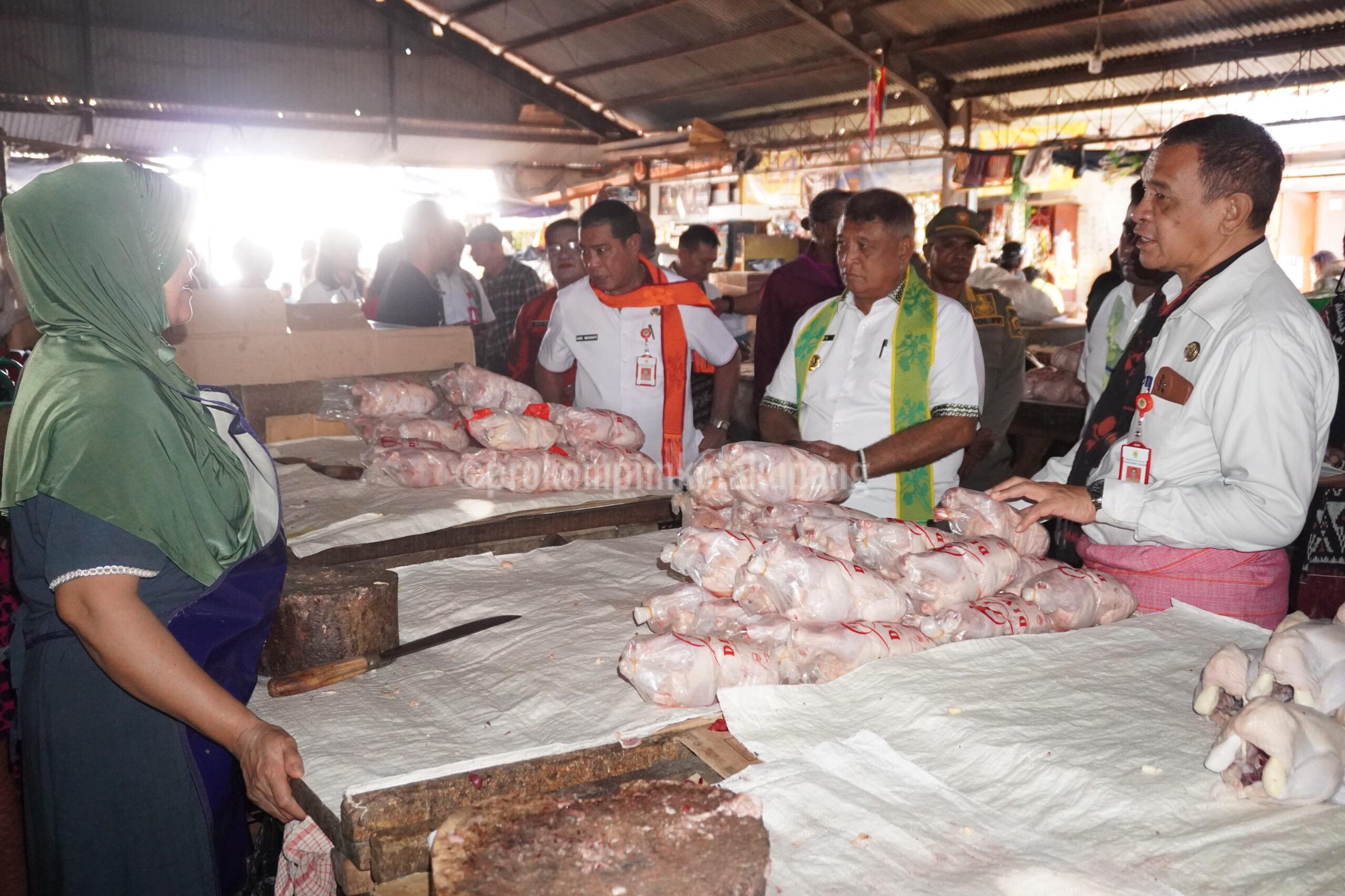 KUPANG, || Penjabat Wali Kota Kupang, Fahrensy Priestley Funay, S.E., M.Si., melakukan kunjungan ke Pasar Oeba pada Selasa (11/6) untuk memantau ketersediaan stok dan kestabilan harga pangan menjelang hari raya Idul Adha 1 Zulhijah 1445 Hijriyah. Dalam kunjungannya, Fahrensy didampingi oleh jajarannya dan Tim Pengendalian Inflasi Daerah Kota Kupang.