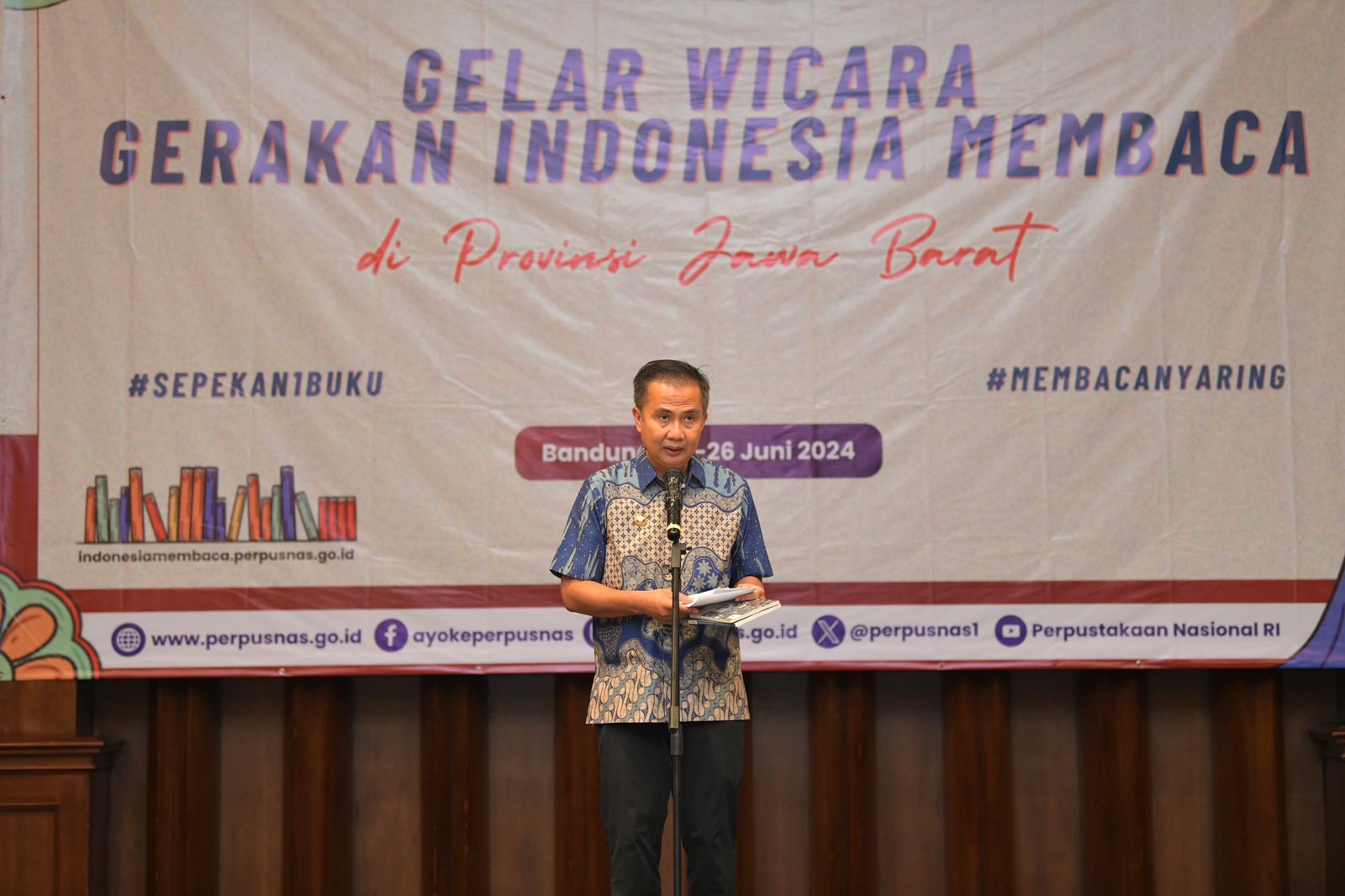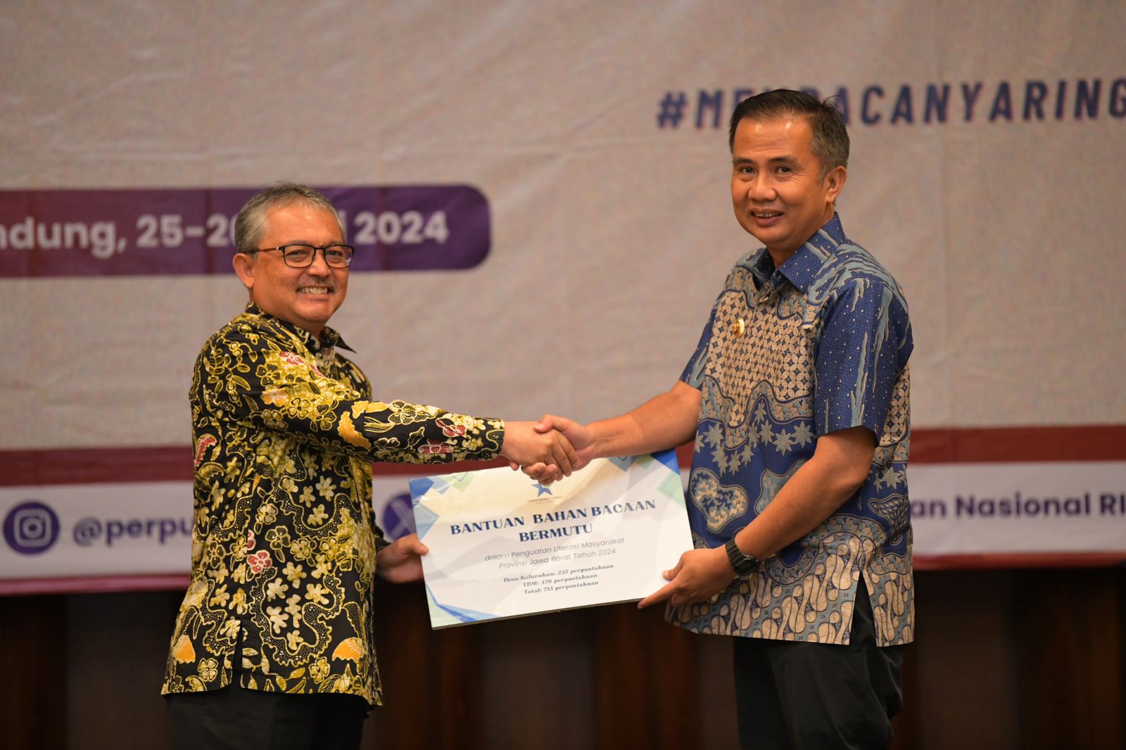 Sebanyak 726.000 buku dari Perpustakaan Nasional (Perpusnas) RI itu diberikan pada acara rangkaian kegiatan Gerakan Indonesia Membaca Provinsi Jabar di El Royale Hotel, Kota Bandung, Selasa (25/6/2024).