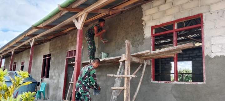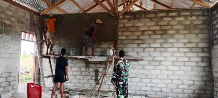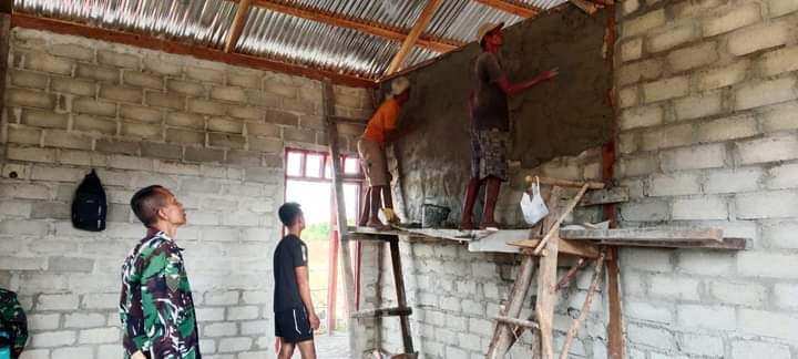 “Sasaran pelaksanaan kegiatan gotong-royong kali ini adalah plester gedung sekolah SMP Kristen, ini merupakan kepedulian kita bersama akan sarana pendidikan,” tambah Serka Fajarudin.