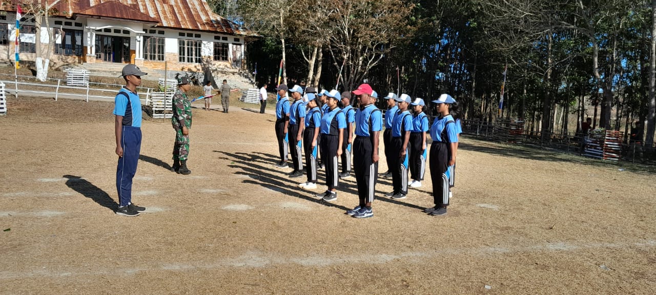 Dalam kegiatannya, Babinsa melatih para anggota Paskibra yang diawali latihan pembinaan fisik dan dilanjutkan latihan peraturan baris berbaris (PBB)