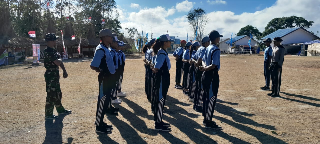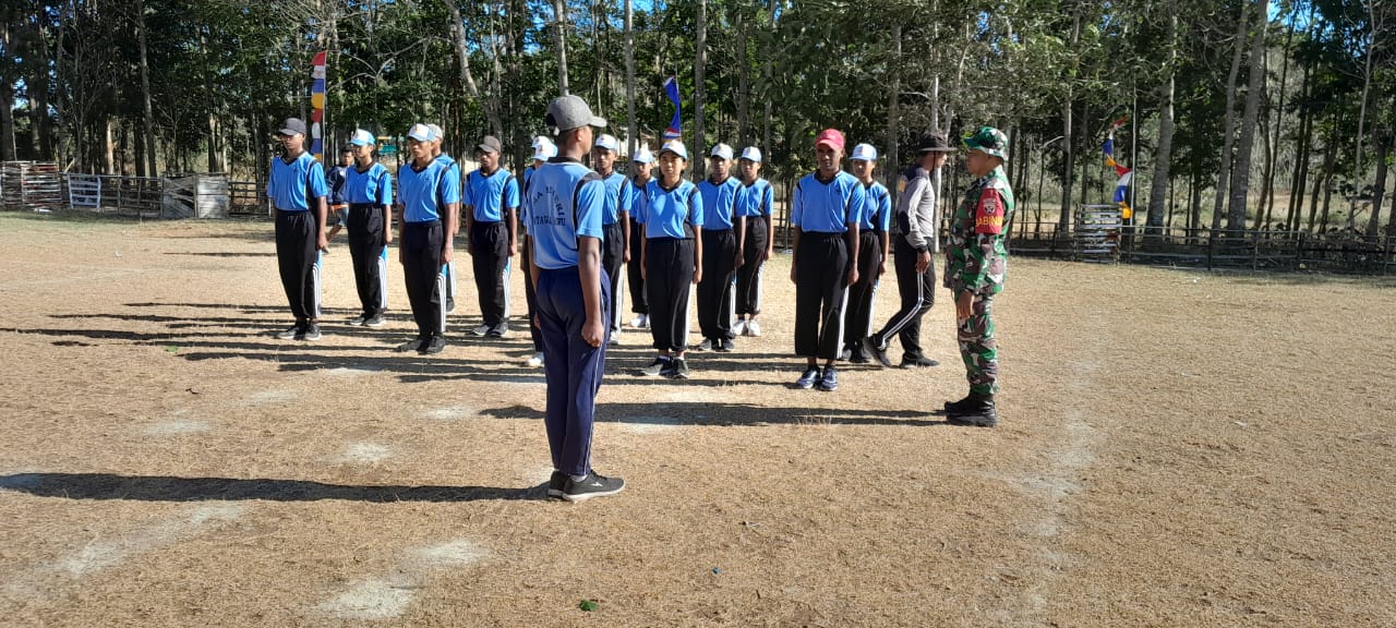 RINDI UMALULU, || Babinsa Koramil 02/Rindi Umalulu Kodim 1601/Sumba Timur Serda Syamsurijal,Serda Amos Luta dan Anggota Polsek Melolo memberikan pelatihan Pasukan Pengibar Bendera (Paskibra) SMA Negeri 1 Matawai La Pawu tingkat kecamatan bertempat di Lapangan Kecamatan Matawai La Pawu,Kabupaten Sumba Timur, Rabu (07/08/2024)
