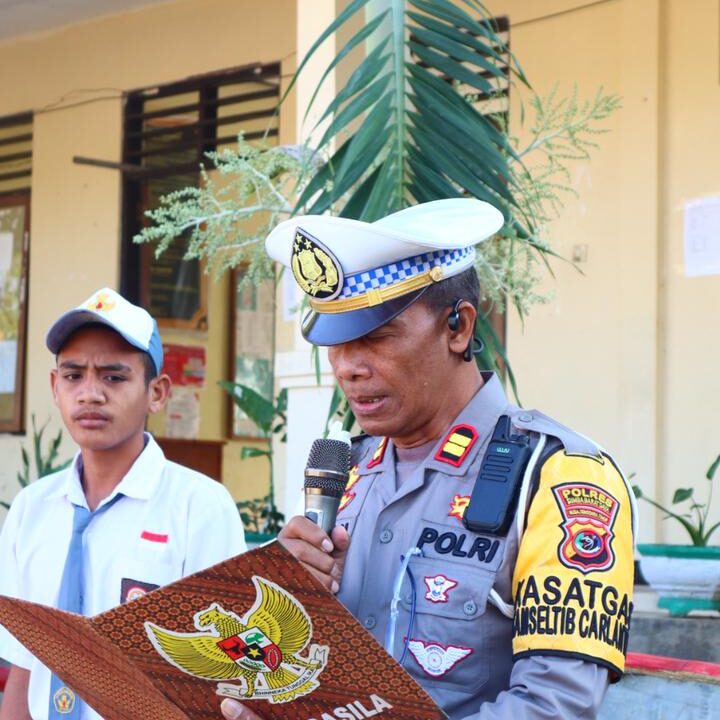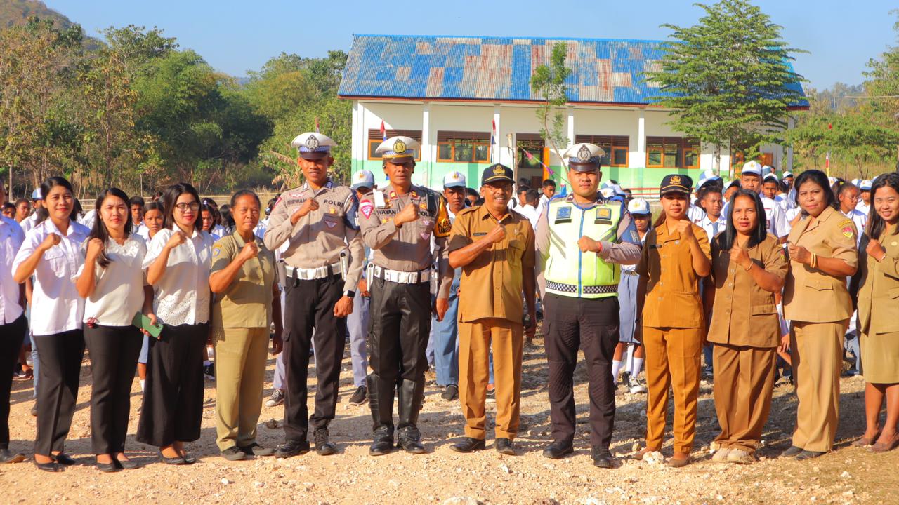 Satlantas Polres Sumba Barat Daya Giat Upacara Bendera guna Menanamkan Nilai-Nilai Pemolisian Pada Pelajar (Siswa-Siswi) Tentang Tertib Berlalulintas