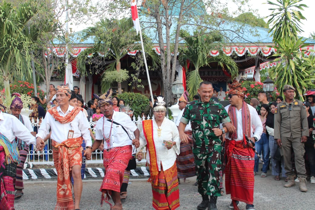 SUMBA TIMUR, || Komandan Kodim 1601/Sumba Timur Letnan Kolonel Arh Doman Endro Pramono menghadiri kegiatan pawai budaya/karnaval hari kedua dalam rangka memeriahkan HUT RI ke-79 tahun 2024 Kab. Sumba Timur,Selasa (13/08/2024)