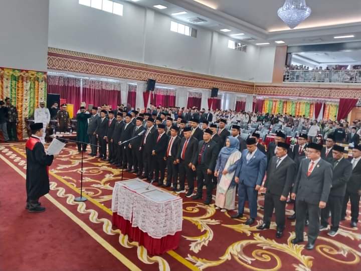 KAB. PESSEL, || Sebanyak 45 anggota DPRD Kabupaten Pesisir Selatan masa bakti 2024-2029 resmi dilantik dan diambil sumpahnya dalam Rapat Paripurna DPRD yang diadakan di Gedung Painan Convention Center (PCC) pada Rabu, 14 Agustus 2024. Acara tersebut dimulai pukul 14.00 WIB dan dihadiri oleh berbagai tokoh penting.