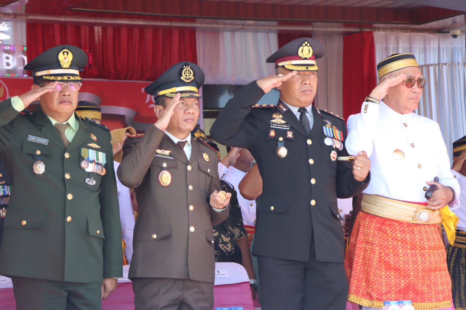 BIMA || Kepala Kepolisian Resor Bima , Polda NTB, AKBP Eko Sutomo,S.I.K, M.I.K., turut menghadiri Upacara Peringatan HUT Kemerdekaan RI Ke-79 Tingkat Kabupaten Bima, Sabtu (17/8/24) Pukul 10.00 Wita, di Halaman Kantor Pemda setempat.