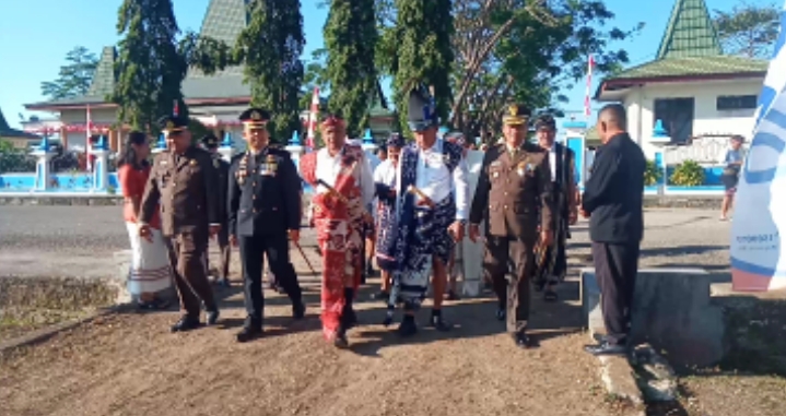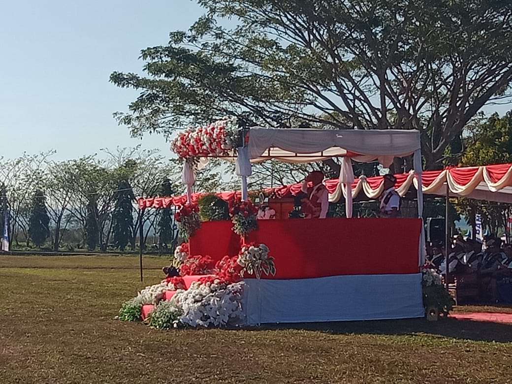 SUMBA TENGAH, || Bertempat di lapangan Makatul tepatnya depan rumah jabatan bupati Sumba Tengah berlangsung upacara HUT RI ke-79 tahun 2024,Selaku Inspektur upacara,PJ Bupati Sumba Tengah,DR.Drs.Jusuf Rupidara,M.Si,Pemimpin upacara,I Ketut Widyantara Putra,sedangkan komandan Paskibraka,Iptu Alwin Ruku Danki Brimob Kompi 3 Yon C pelopor kabupaten Sumba Tengah’”hadir para undangan yakni”Kapolres Sumba Barat,PJU Polres Sumba Barat,Danramil 1613-03/ktn,Kapolsek Katikutana,Kepala KesbangPol,Mewakili Kejaksaan Sumba Barat,Mewakili PN Sumba Barat,Ketua DPRD,Para Camat,Para kepala desa,Kepala Sekolah,Kepala BPJS,Kepala Unit Bank BRI Anakalang,Kepala Bank NTT Sumba Tengah,Toga,Tomas,Toda,Tokoh Pemuda,Tokoh Perempuan serta para undangan.Sabtu,17 Agustus 2024.
