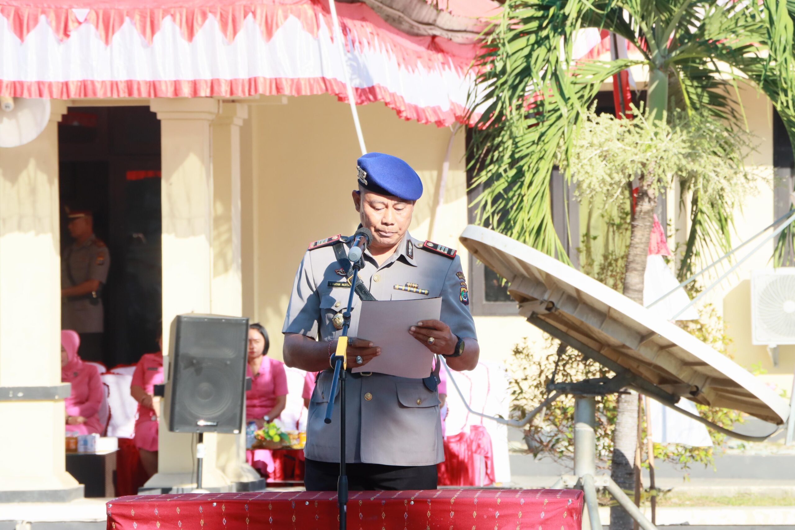 Dalam kesempatan ini, AKBP Christian Kadang, S.I.K. selaku pemimpin upacara juga membacakan naskah Proklamasi Polisi.