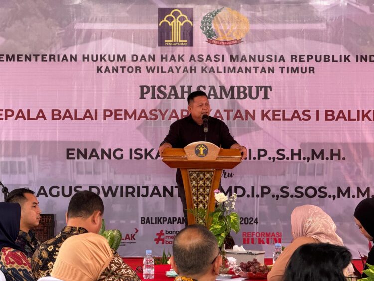 Susunan acara dimulai dengan pembukaan, dilanjutkan dengan sambutan dari pejabat lama, Enang Iskandi, yang menyampaikan rasa terima kasihnya kepada seluruh pihak yang telah bekerja sama selama masa jabatannya. Ia juga berharap agar kepala yang baru dapat melanjutkan dan meningkatkan kinerja serta pelayanan di Balai Pemasyarakatan Kelas I Balikpapan.