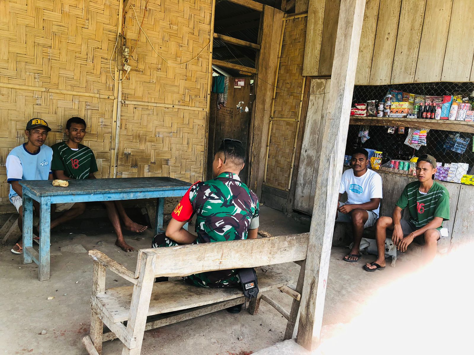 KARERA, || Babinsa Koramil 06/Karera Kodim 1601/Sumba Timur Pratu Hezron Wora melaksanakan Komsos dengan warga sebagai sarana silaturrahmi dan wujud kedekatan Babinsa dengan warga binaannya.