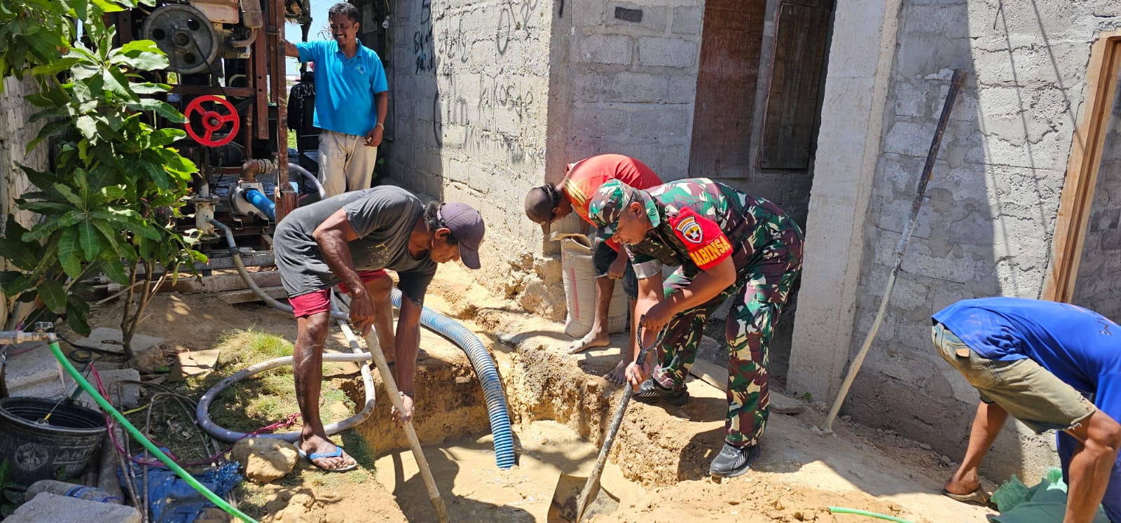 KOTA WAIBGAPU ,|| Sertu Deni Jermias Babinsa Koramil 05/Waingapu Kodim 1601/Sumba Timur melaksanakan Komsos di tempat Bapak Markus Padji warga binaan yang melakukan pembuatan sumur bor di Kelurahan Hambala,Kecamatan Kota Waingapu, Kabupaten Sumba Timur. Kamis (05/09/2024).