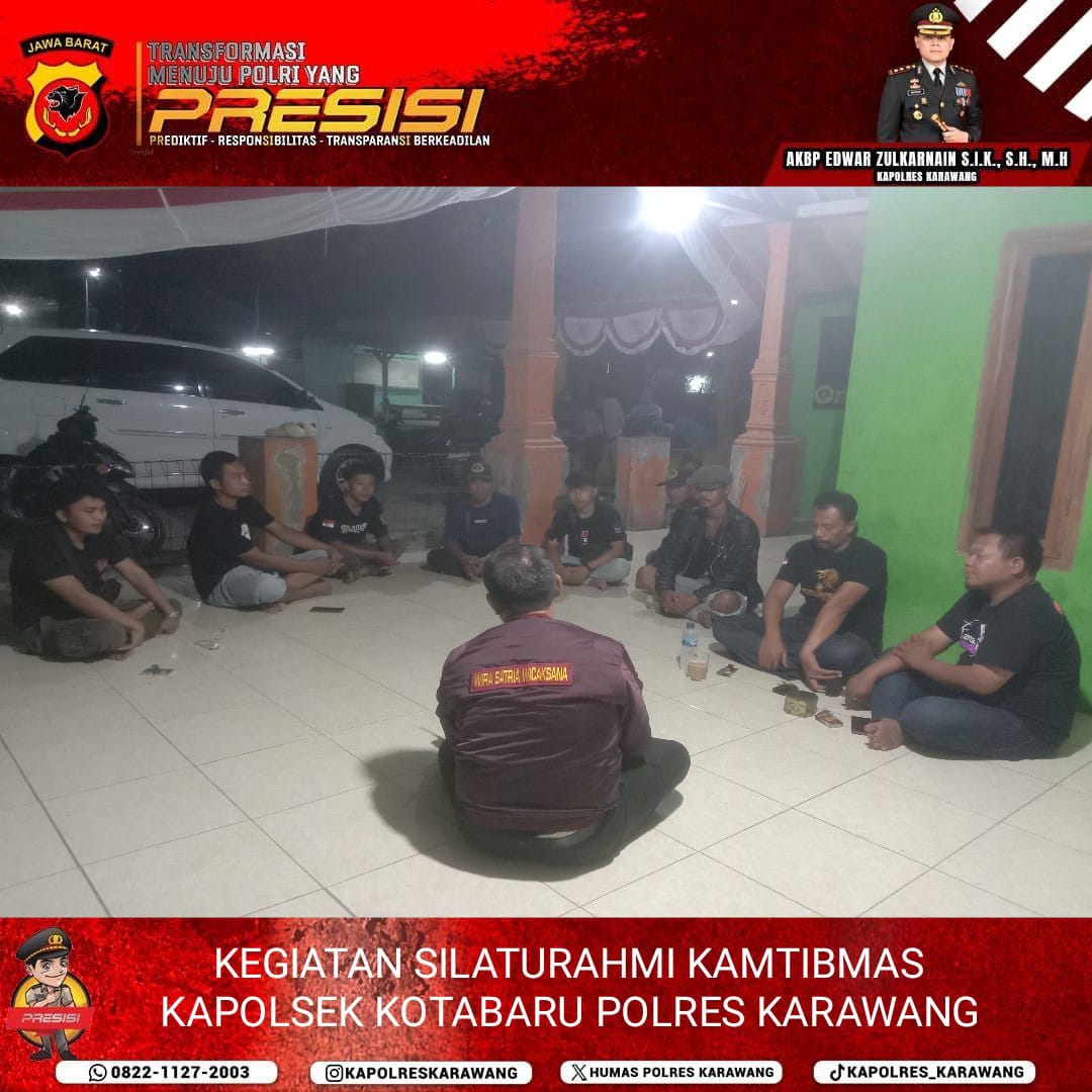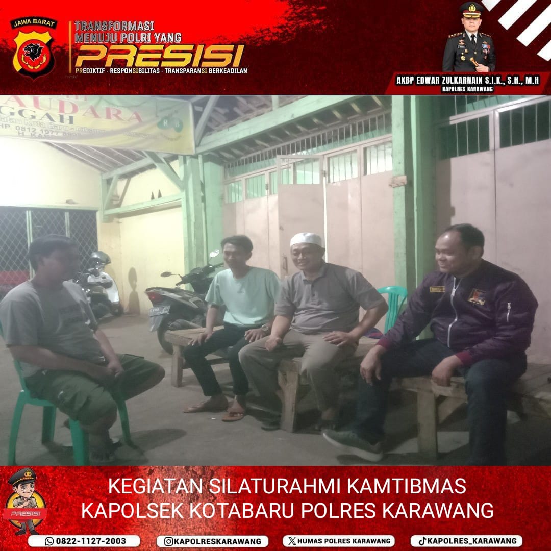 Kapolsek Kotabaru didampingi PS. Kanit Intel melaksanakan silaturahmi dengan tokoh dan masyarakat yang ada di wilayah Kec Kotabaru Kab Karawang yakni Dsn. Gandong Desa Pangulah Utara Kec Kotabaru Kab Karawang, Dsn. Sukamulya Desa Jomin Barat Kec Kotabaru Kab Karawang.