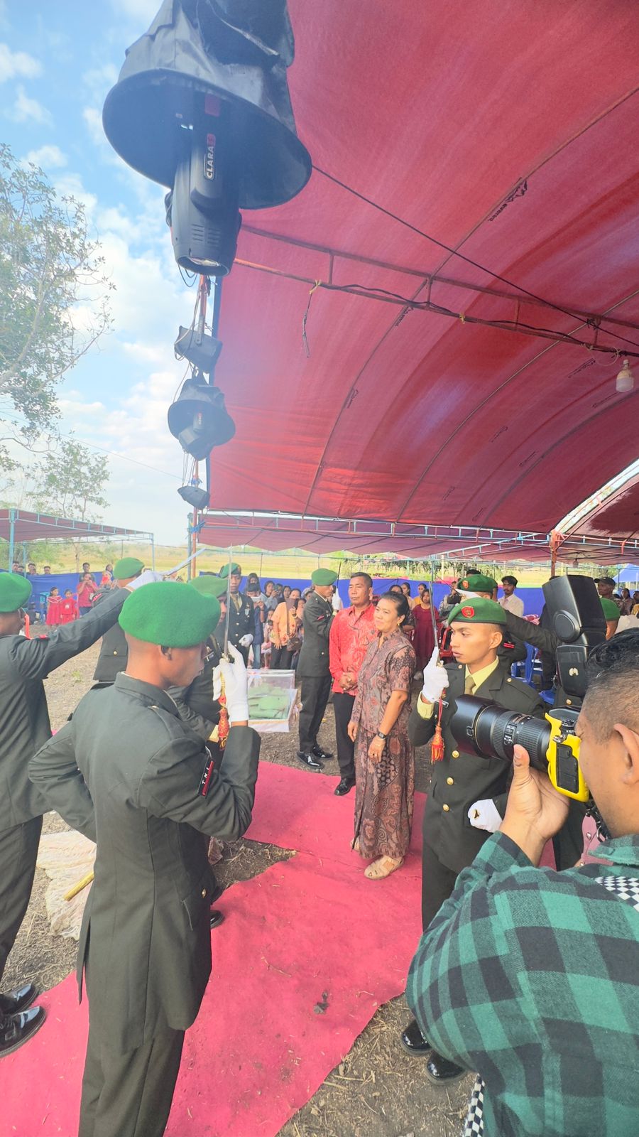 Dalam acara tersebut, Kepala Staf Kodim (Kasdim) 1601/Sumba Timur Mayor Inf Sambudi beserta Istri, selaku atasan menyerahkan pakaian seragam Persatuan Istri Tentara Kartika Chandra Kirana atau biasa disebut Persit KCK merupakan organisasi istri prajurit Tentara Nasional Indonesia Angkatan Darat (TNI AD) pada kedua pengantin.