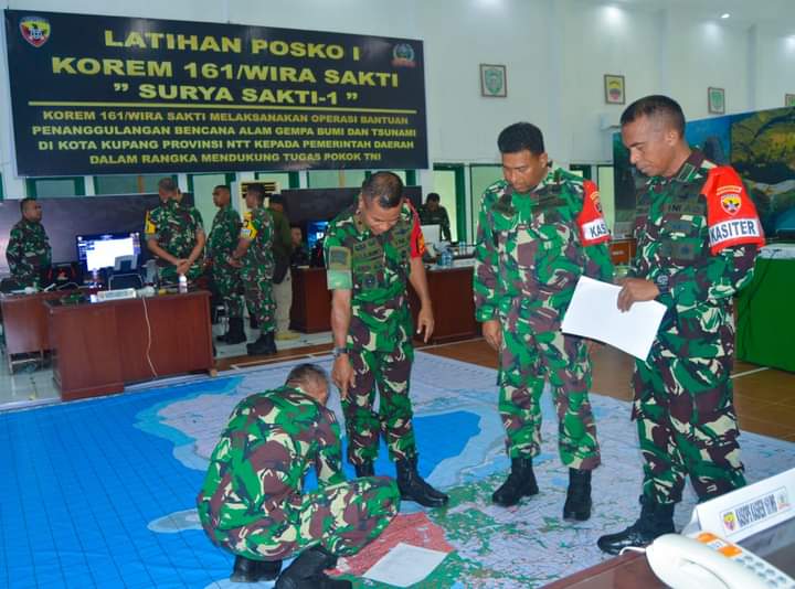 Latihan Posko I Korem 161/Wira Sakti “Surya Sakti-1″ TA. 2024 yang digelar oleh Kodam IX/Udayana dan diikuti oleh Korem 161/Wira Sakti ini mengusung tema “Korem 161/Wira Sakti Melaksanakan Operasi Bantuan Penanggulanan Bencana Alam Gempa Bumi dan Tsunami di kota kupang Provinsi NTT kepada pemerintah Daerah dalam rangka mendukung tugas pokok TNI”.