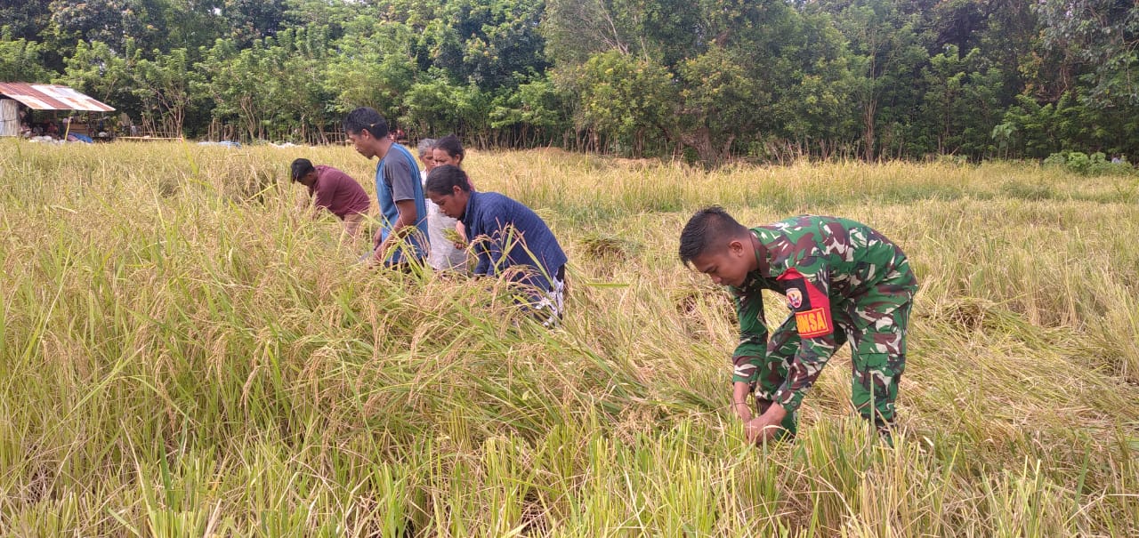 “Ini sudah merupakan tugas kami sebagai aparatur kewilayahan membantu para petani dalam hal pertanian, seperti kegiatan panen padi yang sedang saya kerjakan merupakan wujud kemanunggalan TNI – Rakyat, “ujarnya.