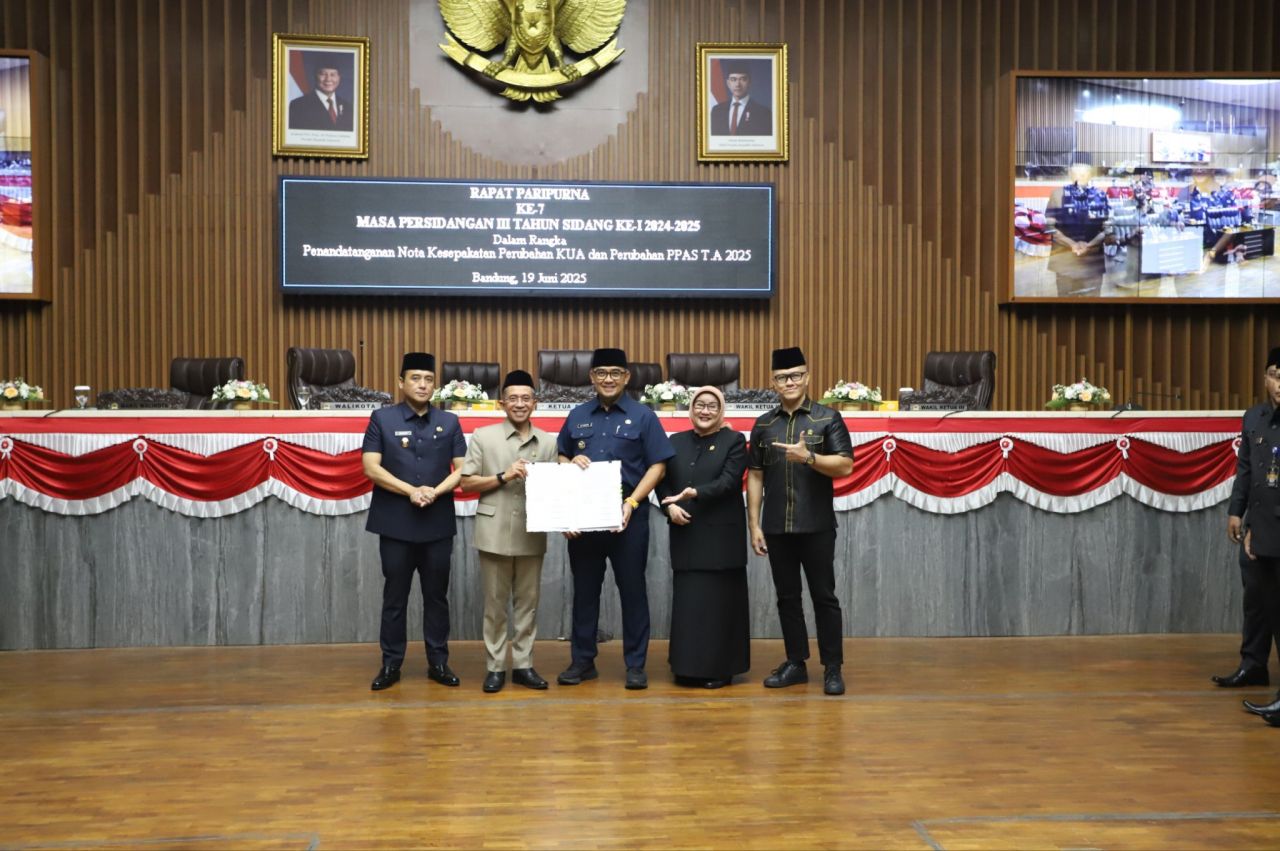 Sergap.co.id – Bandung, 19 Juni 2025 – DPRD Kota Bandung menggelar rapat paripurna dengan agenda penandatanganan Nota Kesepakatan Perubahan Kebijakan Umum Anggaran (KUA) dan Perubahan Prioritas Plafon Anggaran Sementara (PPAS) Tahun Anggaran 2025. Rapat yang dipimpin oleh Ketua DPRD Kota Bandung, H. Asep Mulyadi, S.H., ini juga dihadiri oleh Wakil Ketua DPRD Kota Bandung, Dr. H. Edwin Senjaya, S.E., M.M., dan Rieke Suryaningsih, S.H.