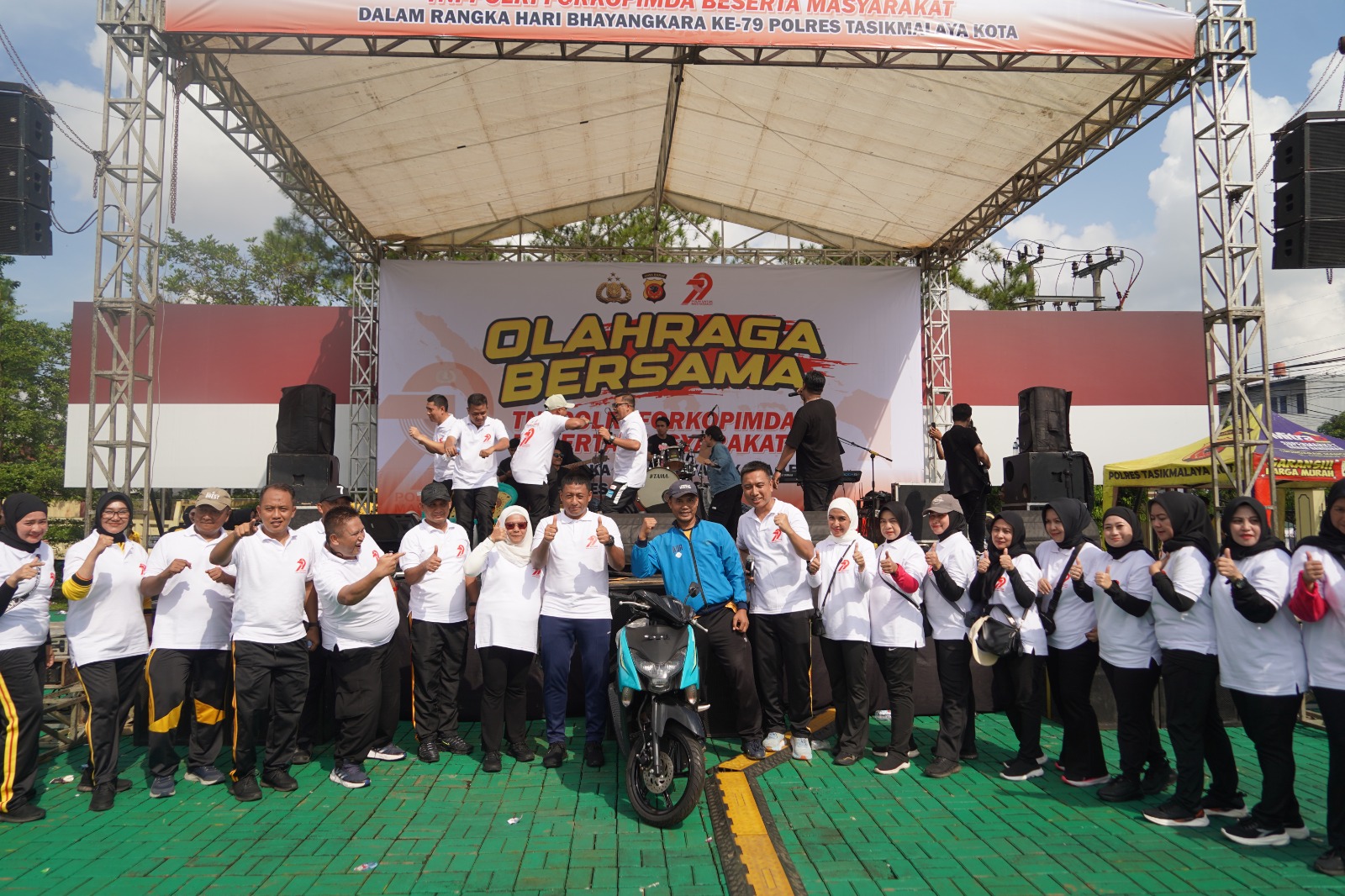 KOTA TASIKMALAYA, || Suasana meriah mewarnai peringatan Hari Ulang Tahun (HUT) Bhayangkara ke-79 yang digelar Polres Tasikmalaya Kota melalui kegiatan Olahraga Bersama, Minggu pagi (29/6), di Mapolres Tasikmalaya Kota. Acara ini melibatkan ratusan peserta dari unsur TNI, Polri, Forkopimda, dan masyarakat umum.