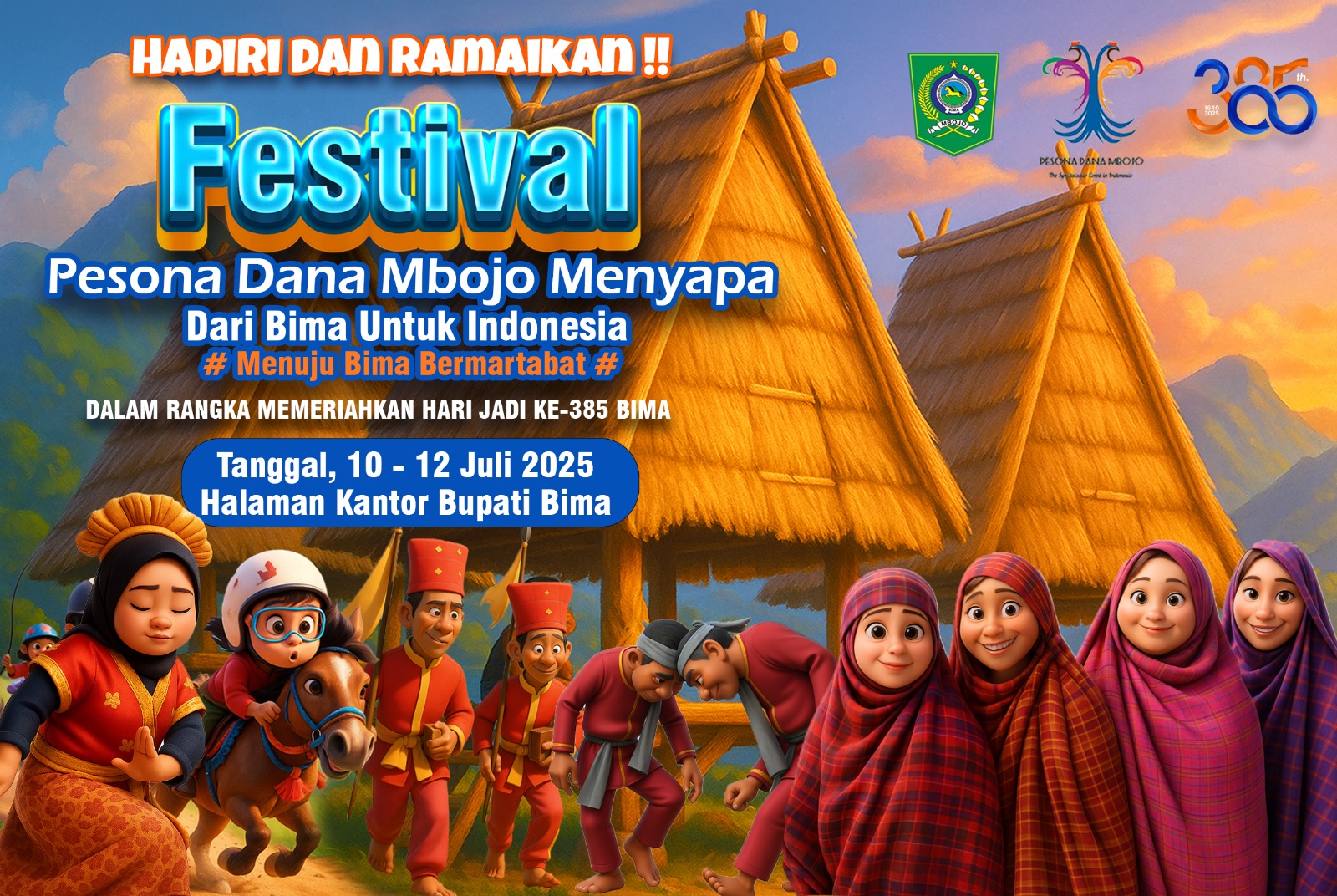 Setelah dua hari sebelumnya panggung hiburan yang di sediakan dalam memeriahkan Peringatan Hari Jadi Ke-385 tahun ini diisi beragam pentas seni, pada hari ketiga Sabtu (12/7/2025) Panitia akan menampilkan atraksi yang tidak kalah meriahnya Panggung di Halaman Kantor Bupati Bima Godo Kecamatan Woha.