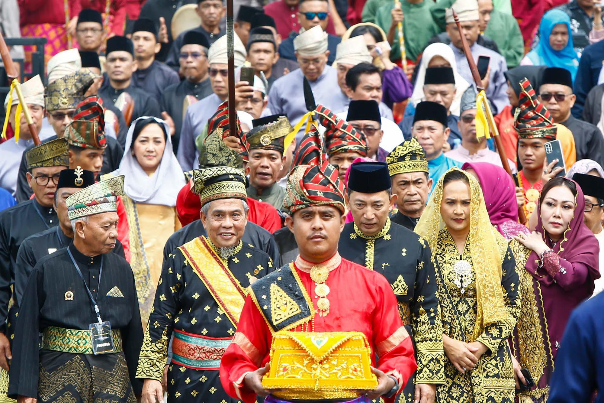 Dalam prosesi adat, Kapolri dikenakan tanjak, selempang, keris, dan kalung pingat masing-masing menyimbolkan kehormatan, perlindungan, kekuatan, dan persaudaraan. Puncak acara ditandai dengan ritual tepuk tepung tawar, simbol harapan, doa keselamatan, dan kebijaksanaan.