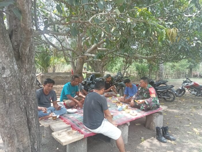 Kegiatan Komsos ini berlangsung di rumah Bapak RW Ngunju, tokoh masyarakat setempat, sebagai bagian dari upaya Babinsa mempererat hubungan silaturahmi dengan perangkat desa dan warga sekitar.