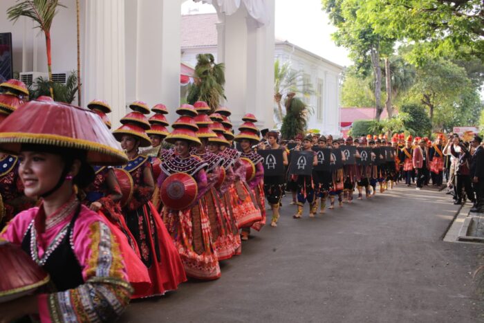 JAKARTA || Tim Penari NTB yang membawakan Tari “Tembolak Beaq” dalam The Spirit of Sasambo di Istana Merdeka tampil Spektakuler sebelum penurunan Bendera Merah Putih, Minggu, (17/8/2025)..