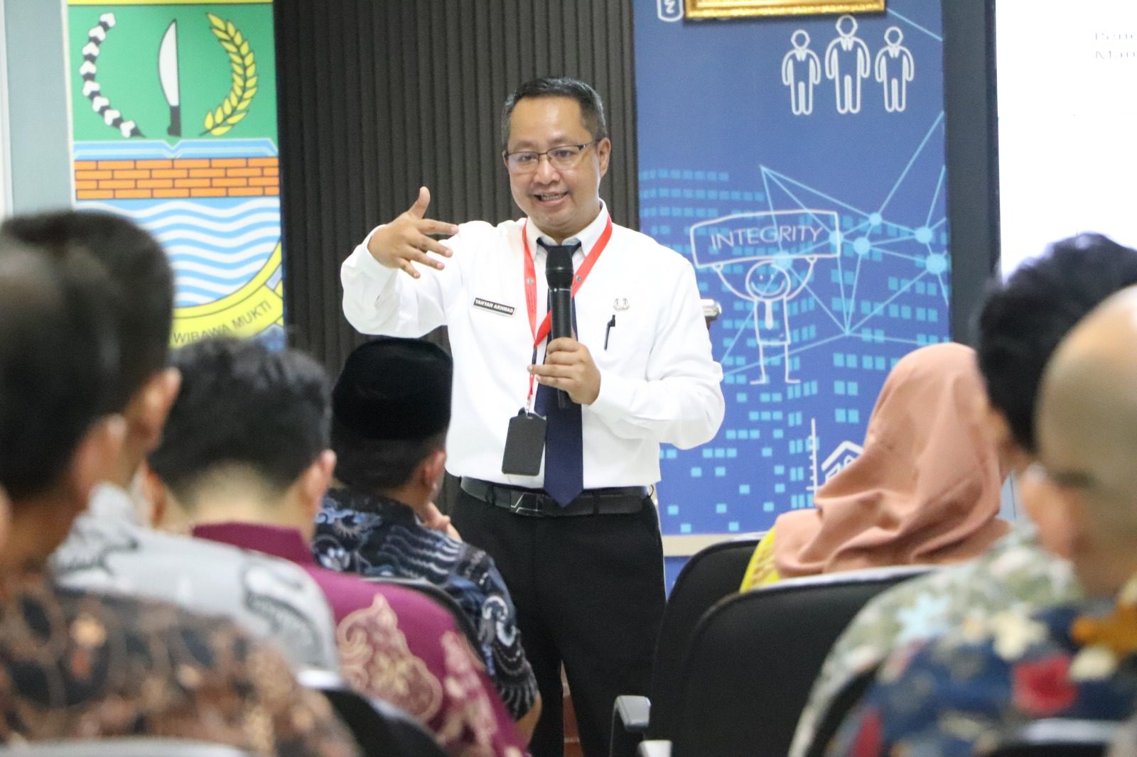 KABUPATEN BEKASI, || Kepala Dinas Komunikasi Informatika Persandian dan Statistik (Diskominfosantik) Kabupaten Bekasi, Yan Yan Akhmad Kurnia, memaparkan strategi percepatan implementasi Sistem Pemerintahan Berbasis Elektronik (SPBE) di tingkat perangkat daerah.