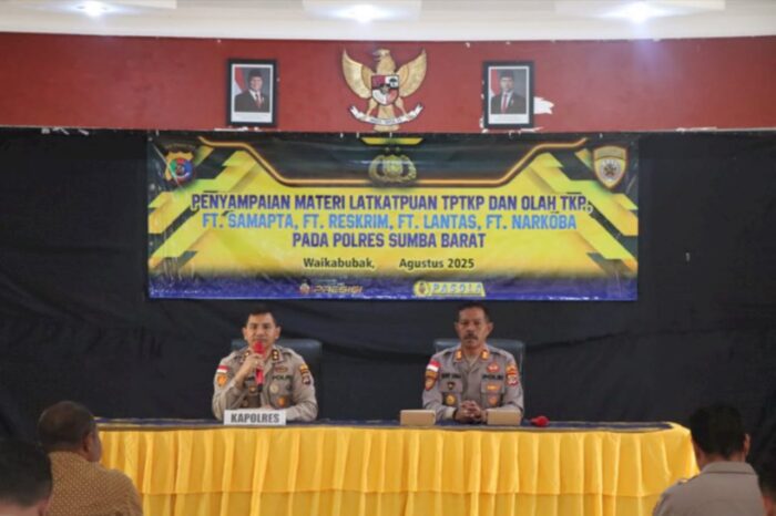 WAIKABUBAK, || Kapolres Sumba Barat AKBP Yohanis Nisa Pewali, S.S., M.H., membuka secara resmi kegiatan Pelatihan Kemampuan Tindakan Pertama di Tempat Kejadian Perkara (TPTKP) yang digelar oleh Bagian SDM Polres Sumba Barat, Kamis (21/8/2025). Kegiatan ini diikuti oleh personel dari berbagai satuan kerja di jajaran Polres Sumba Barat.