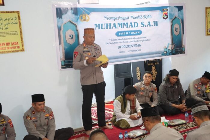 Kepolisian Resor Bima Polda NTB menggelar peringatan Maulid Nabi Muhammad S A.W. 1447 H tahun 2025 M pagi ini Kamis 4 September 2025 pukul 08.00 wita bertempat di Masjid At-Taubah lingkup Mapolres Bima.