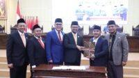 Bupati Bekasi Ade Kuswara Kunang dan Wakil BupatiAsep Surya Atmaja bersama Ketua DPRD Kabupaten Bekasi, Ade Sukron dan para Wakil Ketua, menghadiri Paripurna dengan agenda Penetapan Raperda Lahan Pertanian Pangan Berkelanjutan (LP2B) dan Penyampaian Nota Penjelasan Bupati tentang Raperda Perubahan APBD Tahun Anggaran 2025 di Gedung DPRD Kabupaten Bekasi Cikarang Pusat, Rabu (17/09/2025)