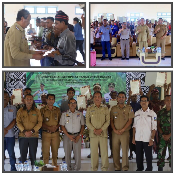 WAIBAKUL, || Wakil Bupati Sumba Tengah, M. Umbu Djoka, menghadiri sekaligus menyerahkan sertipikat tanah kepada masyarakat desa Makatakeri dalam acara penyerahan sertipikat kegiatan Redistribusi Tanah yang berasal dari Tanah Obyek Reforma Agraria (TORA). Kegiatan tersebut berlangsung di Aula Kantor Camat Katiku Tana. Jumat 24/10/2025.