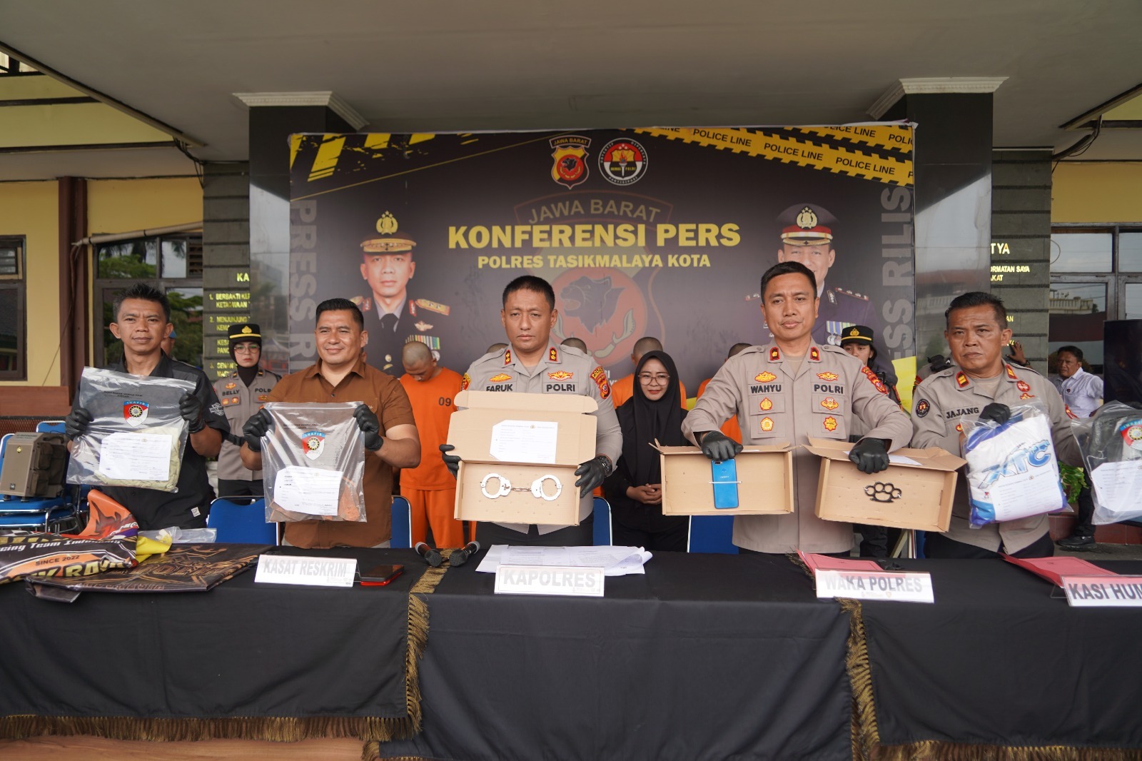 KOTA TASIKMALAYA, || Polres Tasikmalaya Kota berhasil mengungkap dua tindak pidana yang terjadi di wilayah hukumnya, yaitu kasus penganiayaan secara bersama-sama di Kecamatan Kawalu serta kasus kepemilikan senjata tajam tanpa hak di Kecamatan Cihideung. Hal ini disampaikan dalam press release yang dipimpin Kapolres Tasikmalaya Kota AKBP Moh. Faruk Rozi, S.H., S.I.K., M.Si., didampingi Kasat Reskrim dan jajaran penyidik, Rabu (05/11/2025).
