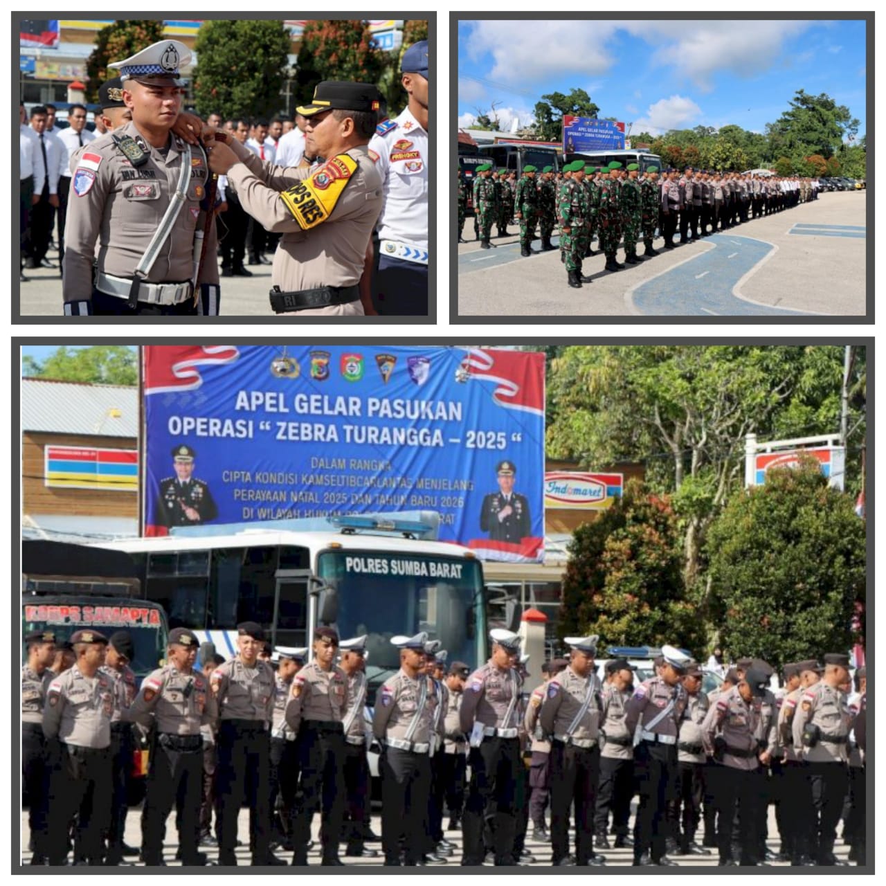 SUMBA BARAT NTT, || Polres Sumba Barat resmi melaksanakan Gelar Pasukan Operasi Zebra Turangga 2025, yang digelar di lapangan apel Mapolres Sumba Barat. Kegiatan tersebut dipimpin langsung oleh Kapolres Sumba Barat AKBP Yohanis Nisa Pewali, S.S., M.H. dan dihadiri oleh unsur Forkopimda Kabupaten Sumba Barat dan Sumba Tengah. Gelar pasukan ini menjadi tanda dimulainya rangkaian Operasi Zebra yang bertujuan meningkatkan kepatuhan masyarakat dalam berlalu lintas.Senin,17/11/2025