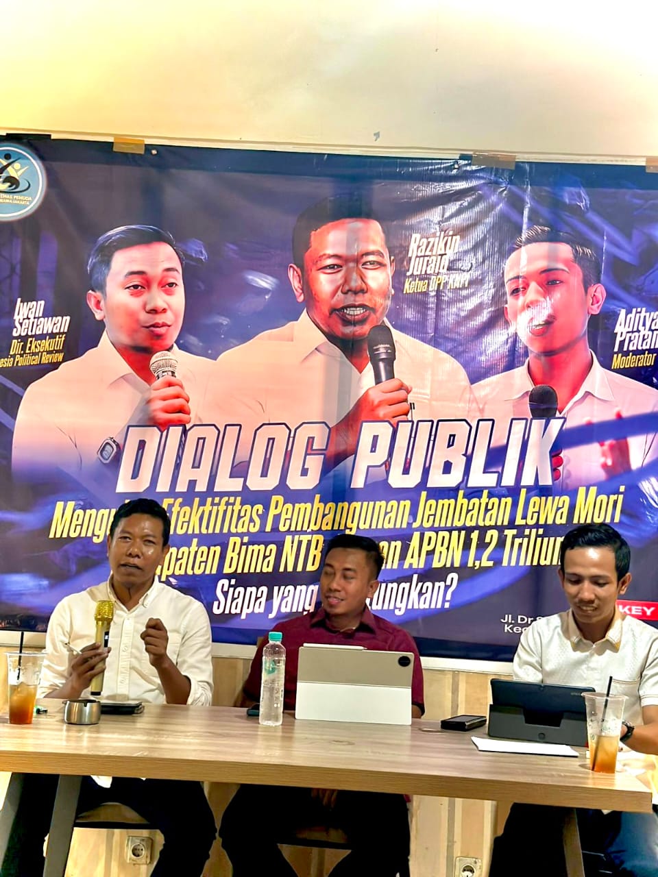 ​”Pemerintah harus berani menunda proyek ini, mengkaji ulang skala prioritasnya, dan memastikan bahwa setiap rupiah APBN yang masuk ke Bima benar-benar berbanding lurus dengan upaya peningkatan Indeks Pembangunan Manusia (IPM) dan penurunan angka kemiskinan,” ujar Aditya Pratama selaku fasilitator dialog publik .
