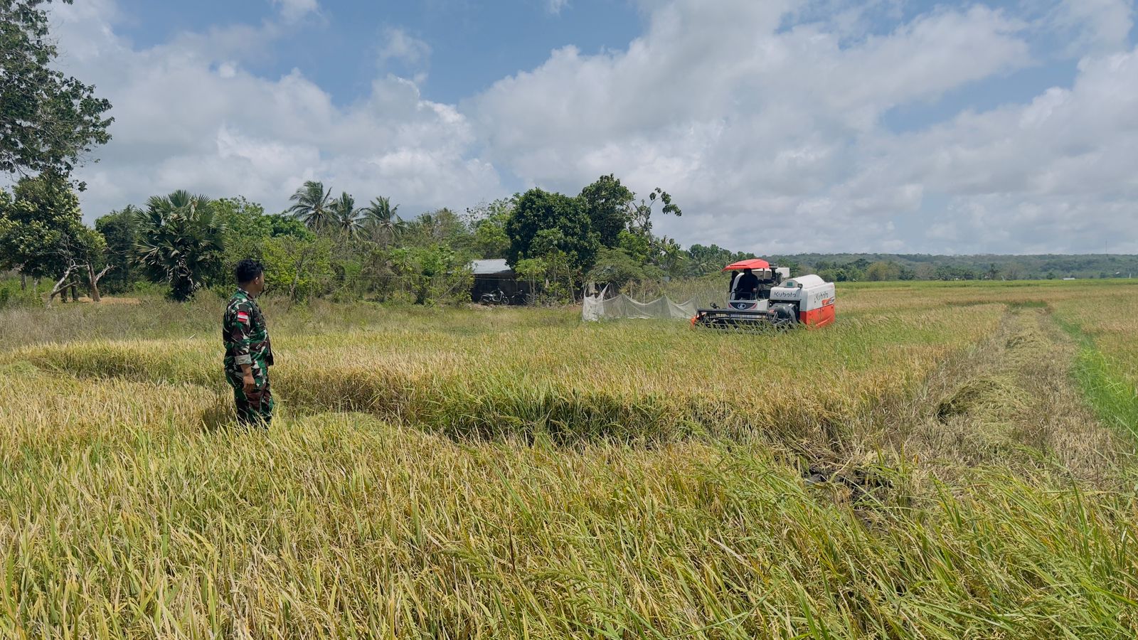 Pratu Apris Yontara Hapu menyampaikan bahwa kehadirannya di tengah para petani merupakan bentuk dukungan TNI terhadap program ketahanan pangan pemerintah. “Kami selalu siap membantu masyarakat, termasuk mendampingi petani agar proses panen dapat berjalan lancar,” ujarnya.