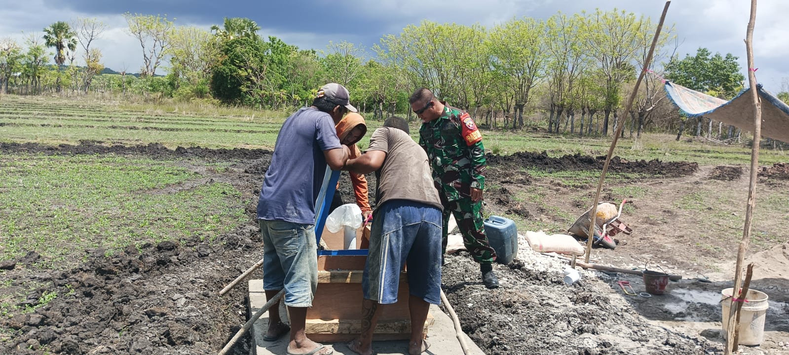 PAHUNGA LODU, ||Tetap sigap meski di hari libur, Babinsa Koramil 03/Pahunga Lodu Kodim 1601/Sumba Timur, Serma Daniel Umbu Ndawa, turut membantu warga dalam kegiatan pemasangan box pembagi air dari fasilitas sumur bor bantuan Kementerian PUPR melalui Balai Wilayah Sungai (BWS) NTT 2.di Desa Kaliuda,Kecamatan Pahunga Lodu,Kabupatrn Sumba Timur.Minggu (30/11/2025).