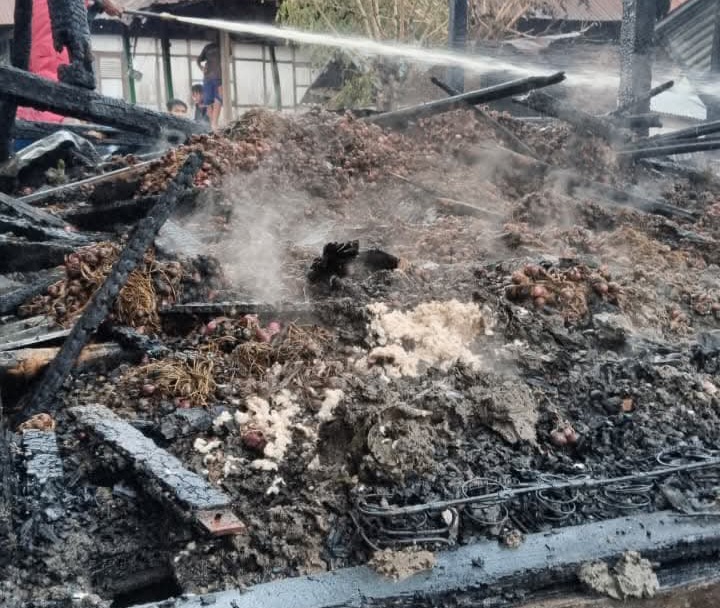 “Rumah panggung milik Bapak Anton mengalami rusak berat, bahkan seluruh isi di dalamnya, termasuk hasil panen bawang merah dan perabot, hangus terbakar. Kerugiannya diperkirakan mencapai Rp200 juta,” kata Rifai.