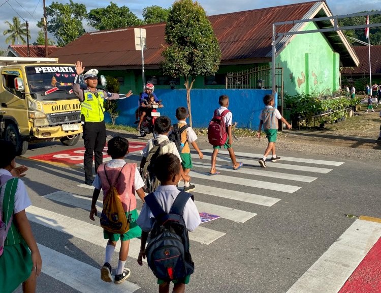 SUMBA BARAT, NTT, || Untuk meningkatkan keselamatan pelajar dan kelancaran arus kendaraan pada jam sibuk, Satuan Lalu Lintas (Sat Lantas) Polres Sumba Barat melaksanakan kegiatan pengaturan lalu lintas (gatur) di depan sejumlah sekolah, Senin pagi.