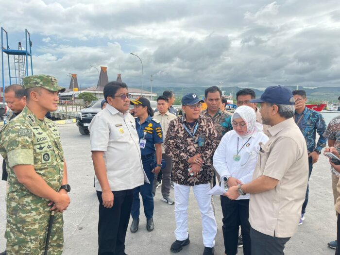 SUMBA TIMUR NTT ,|| Dandim 1601/Sumba Timur Letkol Inf Dobby Noviyanto S., S.E bersama Forkopimda Kabupaten Sumba Timur mendampingi kunjungan kerja Deputi Bidang Koordinasi Sumber Daya Maritim, Deputi Bidang Koordinasi Usaha Pangan dan Pertanian, Menteri Perikanan dan Kelautan, serta Tim Koordinasi Percepatan Pembangunan Proyek Strategis Nasional (PSN) di Pelabuhan Waingapu, Kelurahan Kambajawa, Kecamatan Kota Waingapu, Jumat (05/12/2025).