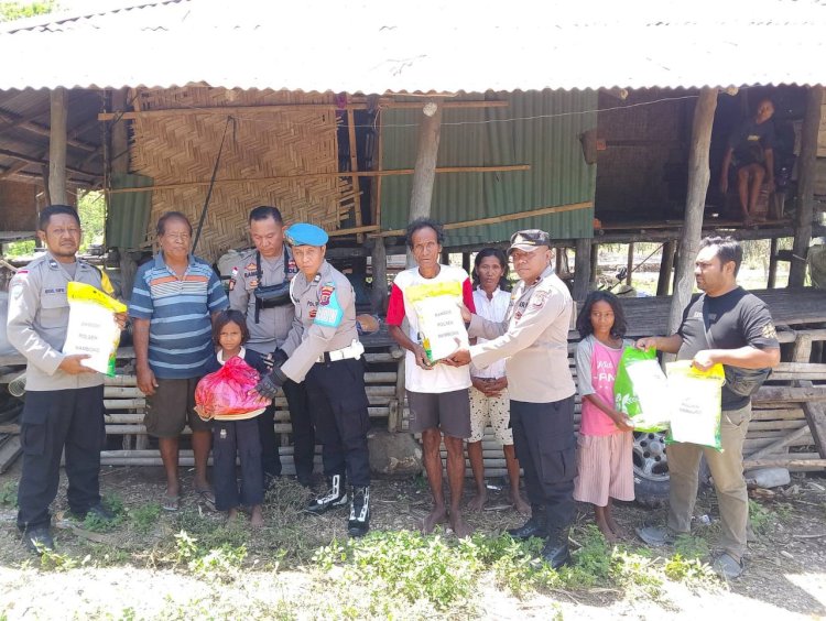 SUMBA TENGAH, NTT | Kapolsek Mamboro Ipda Eliazet Manuhutu, S.H., bersama personel Polsek Mamboro menyerahkan bantuan sembako kepada warga yang menjadi korban kebakaran di Kampung Sawirara, Desa Wendewa Barat, Kecamatan Mamboro, Kabupaten Sumba Tengah. Langkah cepat tersebut merupakan bentuk kepedulian dan respon Polri untuk membantu meringankan beban masyarakat yang terdampak musibah beberapa waktu lalu.