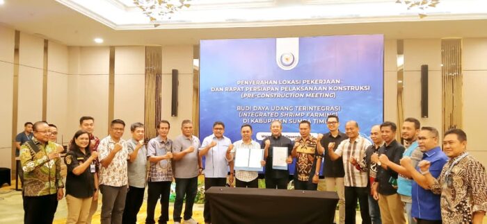 Setelah prosesi penyerahan lokasi dan penandatanganan dokumen, kegiatan dilanjutkan dengan rapat yang membahas kesiapan teknis, koordinasi lintas sektor, serta tahapan awal pelaksanaan konstruksi budidaya udang terintegrasi di wilayah Sumba Timur.
