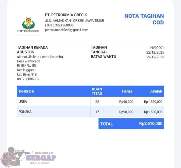 Pesan Pupuk Bersubsidi Lewat Online Ke PT. PETRO KIMIA GRESIK, Warga Waworada Ditipu Rp49 Juta