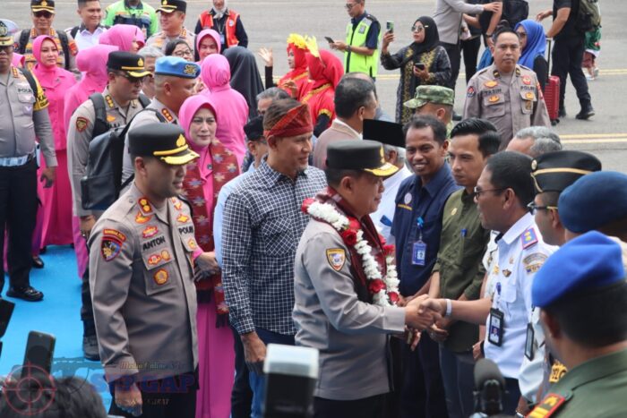 BIMA || Dengan menumpangi Pesawat Udara Wings Air rute Lombok-Bima dengan nomor penerbangan Wings Air IW 1826 Kapolda NTB Irjen Pol Edy Murbowo,S.I.K.,M.Si. bersama Ny. Sriwati Yuliasstuti dan rombongan mendarat di Bandara SMS Bima.