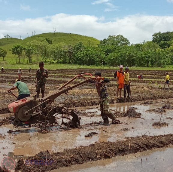 LEWA,||Tak mengenal hari libur, Babinsa Koramil 01/Lewa, Kodim 1601/Sumba Timur, Praka Stepanus Dappa Taka terus menunjukkan komitmennya dalam mendukung ketahanan pangan nasional dengan membantu petani mengolah sawah menggunakan alat modern berupa hand traktor. Kegiatan tersebut berlangsung di Desa Bidipraing, Kecamatan Nggoa, Kabupaten Sumba Timur, Minggu (08/02/2026).