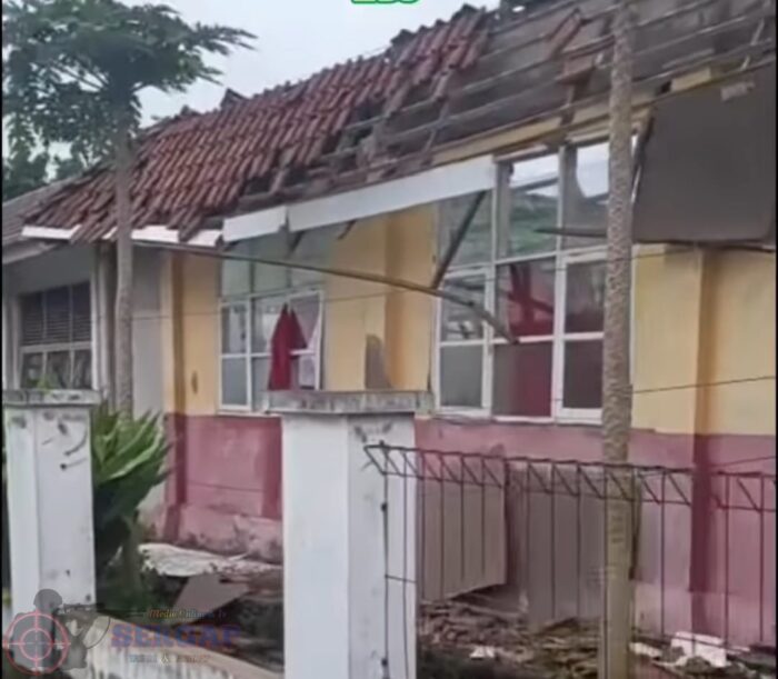 Kejadian tersebut mengakibatkan sedikitnya tiga atap ruang kelas, termasuk bagian pojok kantor, mengalami kerusakan parah setelah ambruk secara mendadak.