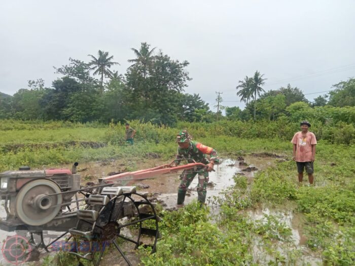 Kegiatan tersebut dilakukan dengan membantu petani membajak sawah menggunakan traktor di lahan milik warga, Aleksander, sebagai bagian dari percepatan pengolahan lahan menjelang musim tanam.