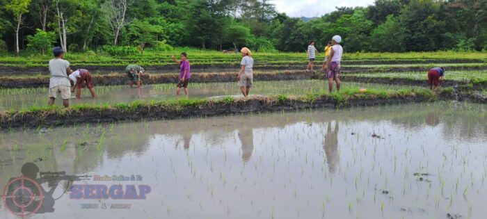 Kegiatan tersebut merupakan bagian dari pembinaan teritorial Babinsa dalam mendukung swasembada pangan serta meningkatkan produksi pertanian masyarakat.