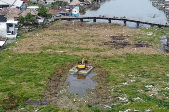 Pembersihan dilakukan dengan mengeruk gulma yang menutupi area sekitar satu hektare dengan ketebalan mencapai satu meter. Kondisi ini dinilai sudah menghambat arus air secara signifikan.
